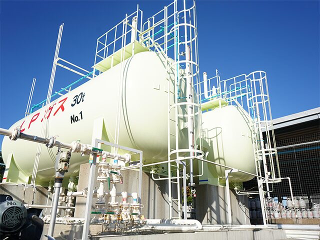 さらに、敷地内には自家用オートガススタンドを併設しており、配送車の燃料としてLPガスを充填可能。これにより、配送体制をより機動的にし、供給の安定性を確保しています。